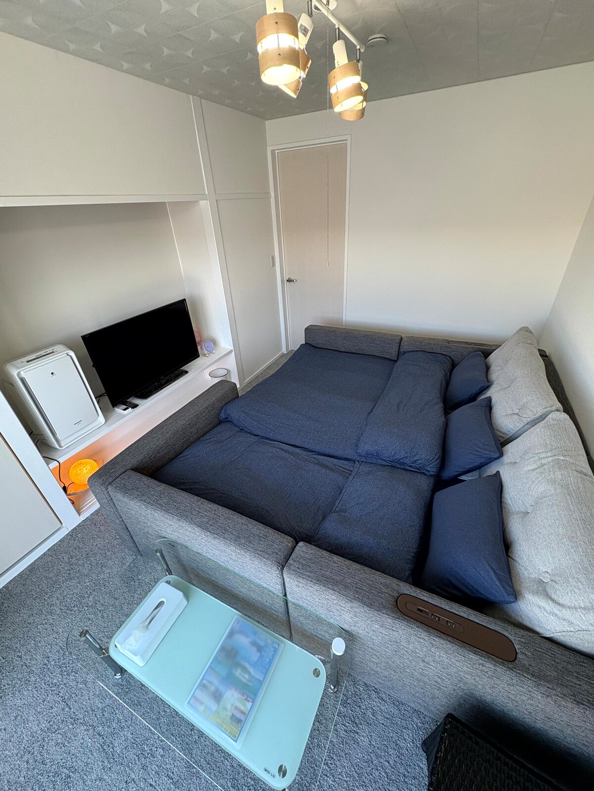 Es ist ein großes Blockhaus. Der erste Stock besteht aus einem großen Saal und einer Küche. Blockhäuser haben auch eine hervorragende Wärme- und Schalldämmung. Selbst wenn der Gast ein Musikinstrument spielt, wird es die Nachbarn nicht stören. Die Unterkunft befindet sich im Schlafzimmer im zweiten Stock und zwischen Tatami-Matten. Entspannen kannst du auch im Wohnzimmer im zweiten Stock. Im zweiten Stock befindet sich ein Tor an der Treppe, sodass auch kleine Kinder sicher spielen können. Schnelles WLAN und kostenlose Parkplätze.