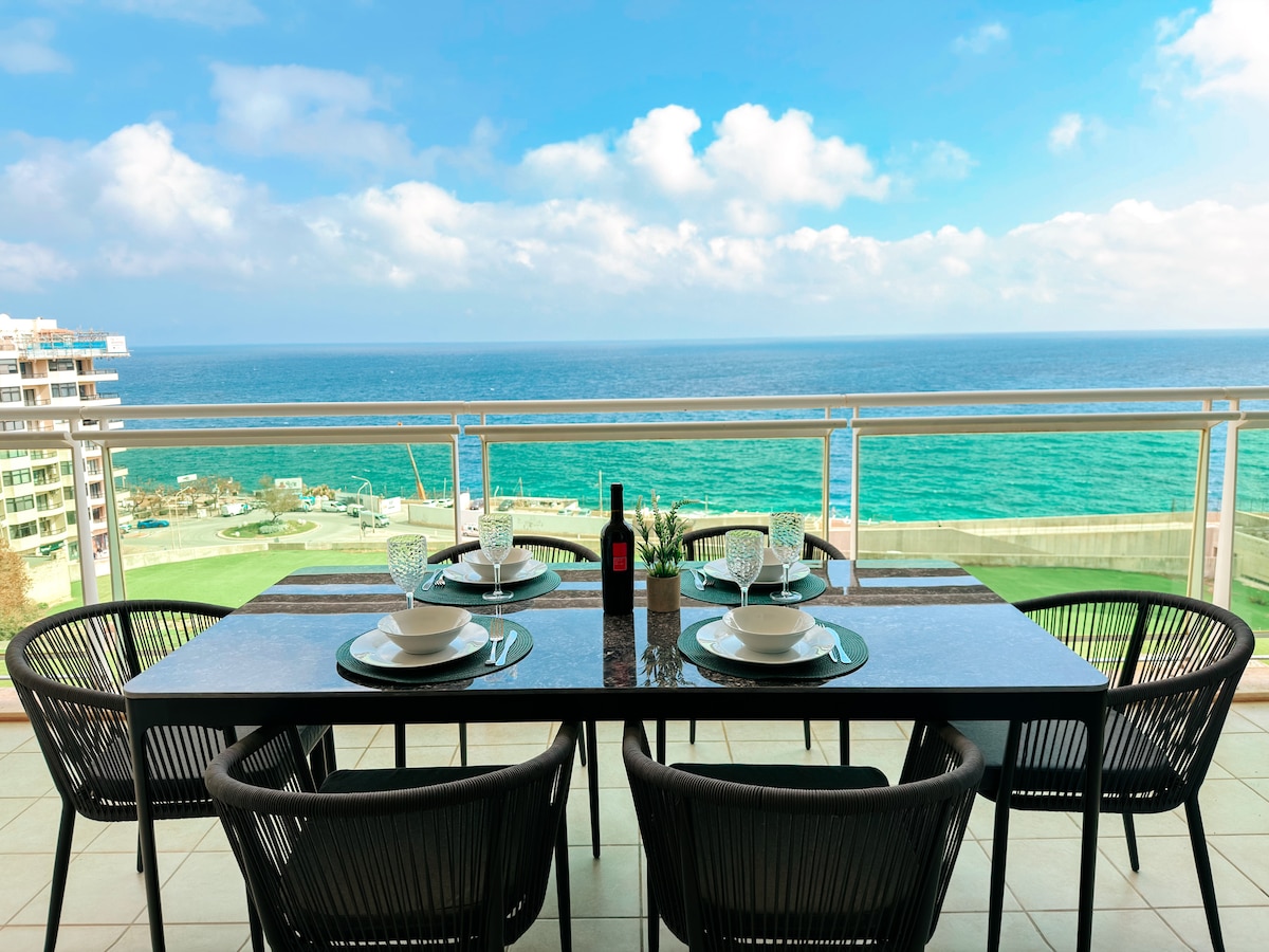 Beautiful modern very comfortable two bedroom apartment with stunning sea views from the front terrace. Situated in the heart of St Julians in an unbeatable location, this apartment is close to restaurants, the beach, nightlife, and family-friendly activities. It is extremely central yet quiet. You can wake up in the morning and be on the beach having a refreshing swim within a 2 min walk from the apartment. The bus stop is right across the road and the supermarket is a 3-5 min walk away.