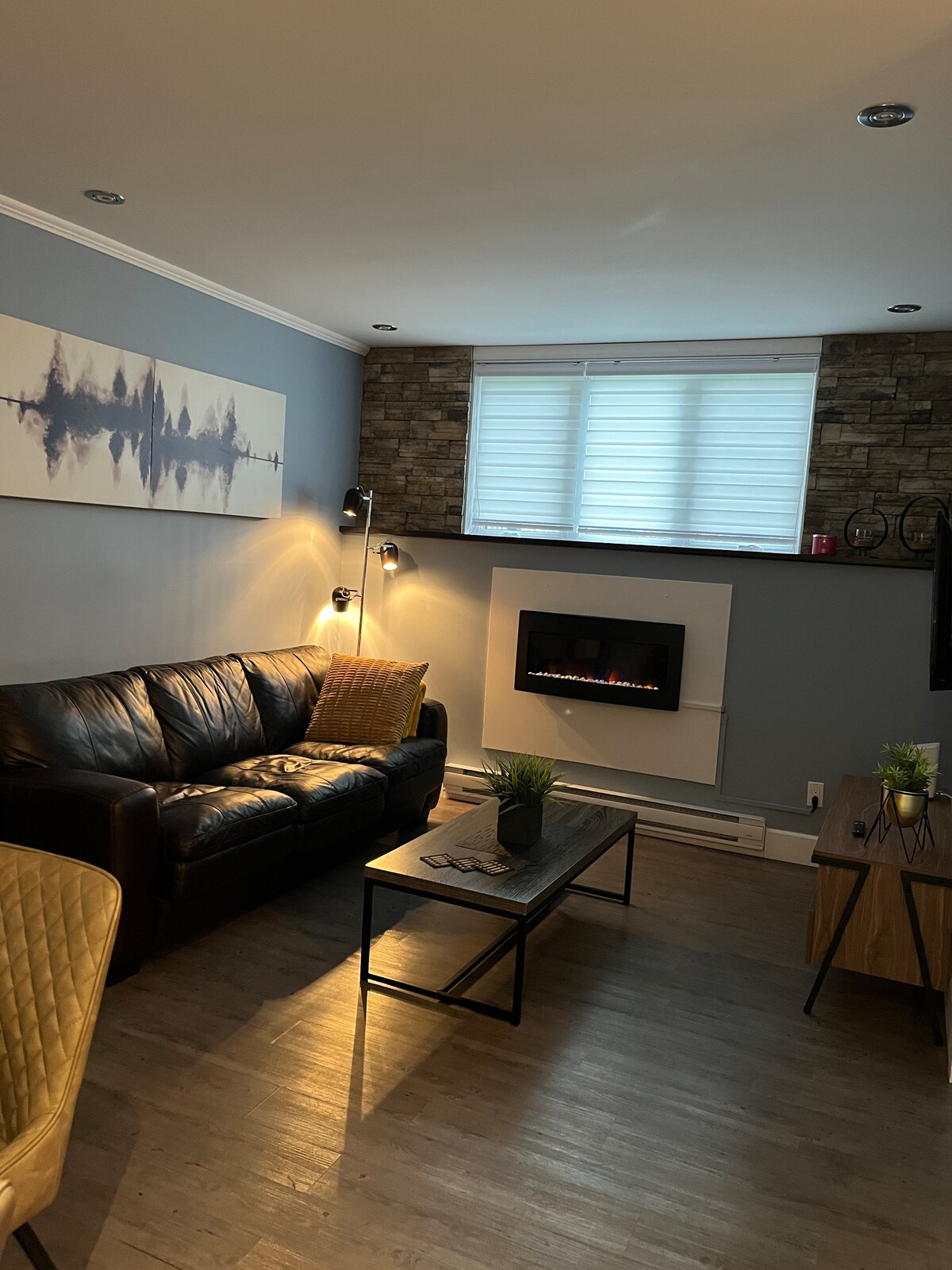 Fühlen Sie sich in dieser neuen Wohnung auf der schönen Île d'Orléans wie zu Hause. Die Unterkunft ist perfekt für einen erholsamen Rückzugsort oder als Basis für Remote-Arbeit. Sie hat ein minimalistisches Design und ist recht geräumig. RIESIGER Außenbalkon, um Aussicht und Sonnenuntergänge zu genießen. Sie ist mit einer funktionalen Küche, einem geräumigen Badezimmer, einer Klimaanlage und hohen Decken ausgestattet. Es ist eine Eckeinheit ohne Nachbarn oben oder unten (SEHR ruhig), sodass du einen perfekten Schlaf abseits der Geräusche der Stadt genießen kannst. Das Parken ist einfach und günstig neben der Einheit gelegen.