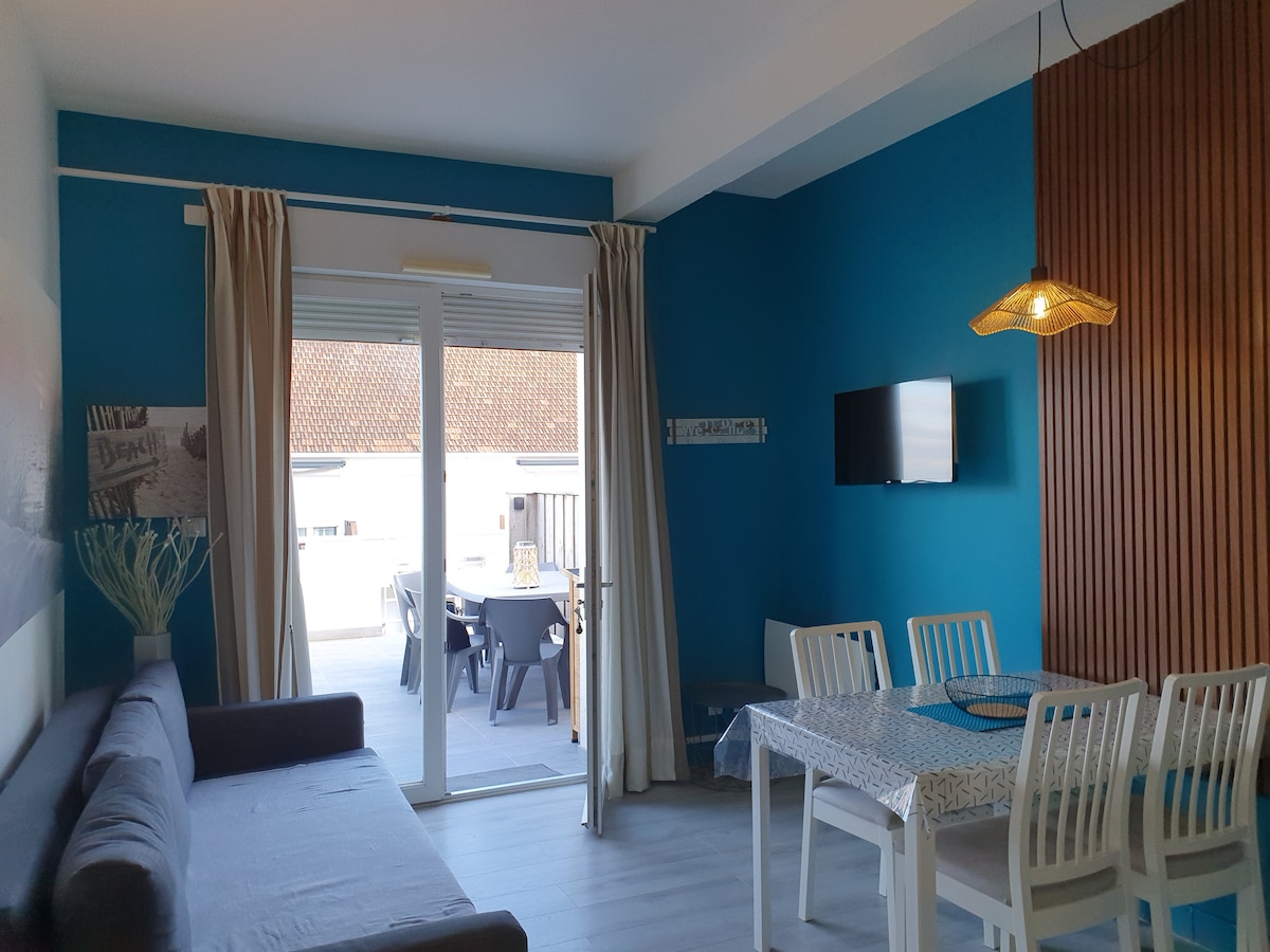 Agréable appartement vue mer, terrasse de 8 m² sud ouest, accès direct aux plages. Situé au 2ème et dernier étage d'une petite résidence, restaurants et centre ville à proximité. Il comprend 1 chambre avec 1 lit de 140 avec placard, 1 canapé convertible de 140 dans le salon Le linge de lit, serviettes de toilettes, torchons à vaisselle ne sont pas fournis. Télévision grand écran, un coin cuisine équipé. Salle de bain avec douche, lave linge, WC séparé, Place de parking gratuit dans la résidence.