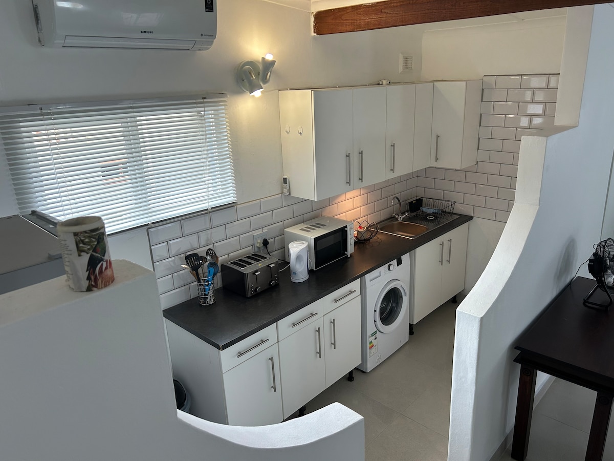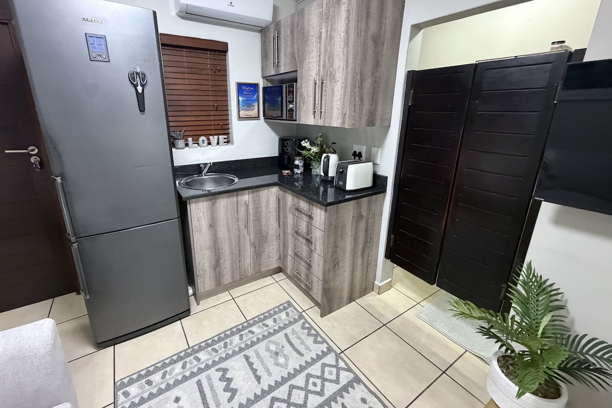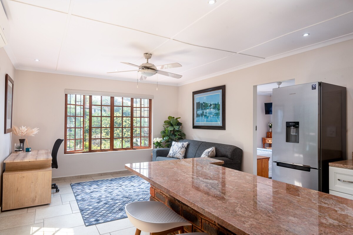 Eine vielseitige Wohnung für Arbeit und Freizeit, nur 10 Gehminuten vom bewachten Hauptstrand von Ballito entfernt. Einkaufszentrum in der Nähe für alle deine Bedürfnisse. Genieße zugewiesene Parkplätze, einen Wechselrichter für die Beleuchtung nur bei Stromausfällen und einen privaten Garten mit Sitzgelegenheiten im Freien und einem Grill. Ein einzelnes Haustier ist willkommen (1 kleiner Hund, bitte gib Rasseninformationen an). Haustiere sind nicht auf Betten oder Sofas erlaubt, also bring bitte ihr Bettzeug mit.