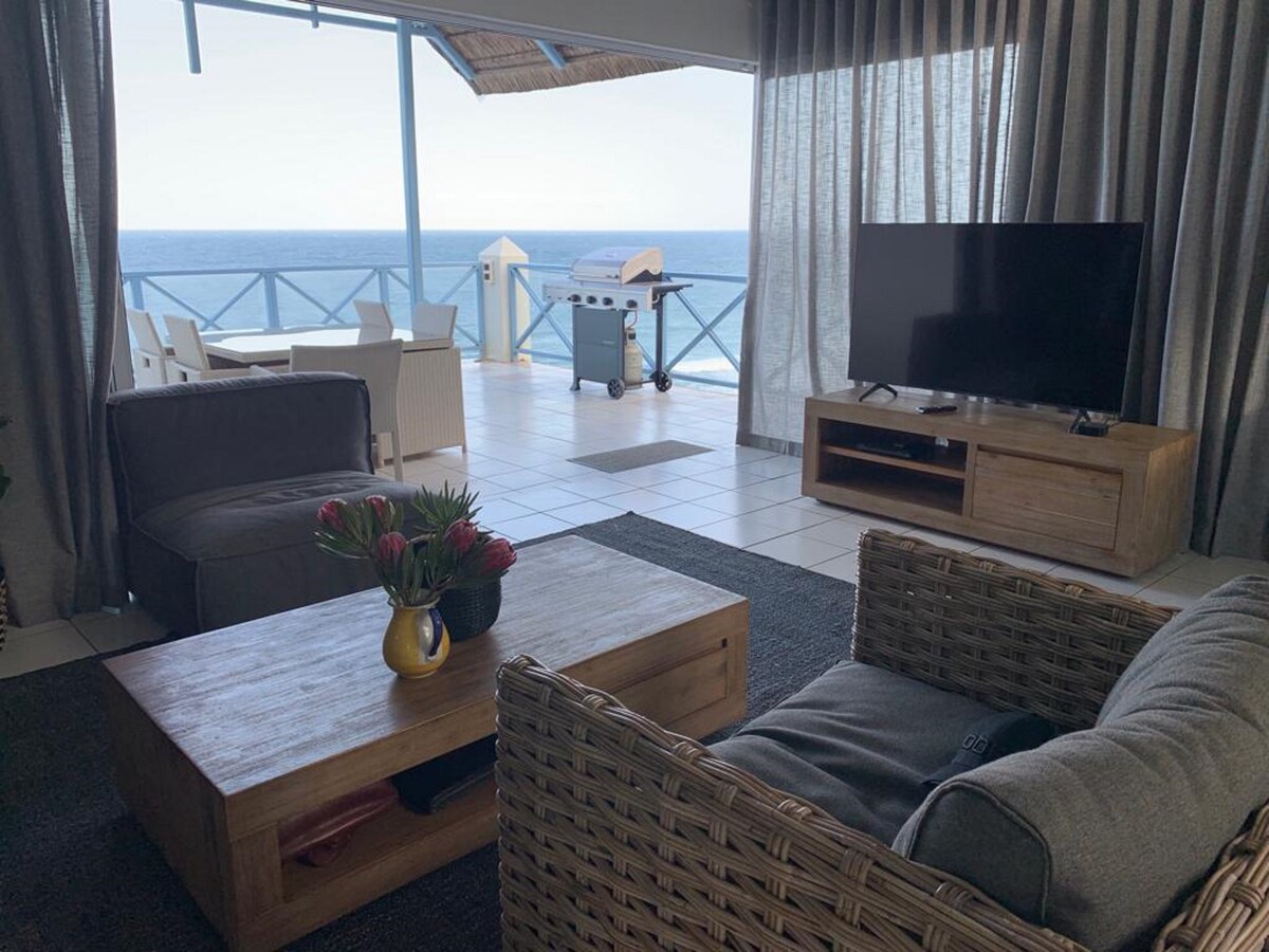 7 Driftwood is an absolute gem,situated right on the beach with magnificent ocean views.3 beautiful bedrooms,2 bathrooms having luxurious walk-in showers &bath tub.The main bedroom, living room& Dining area opens directly facing ocean-360 oceanview.There is free wi-fi,full DSTV, Netflix etc. No loadshedding as equipped with Inverter.Apartment has an ocean patio with Braii, dinning set,swimming pool,tennis court,remote garage-direct in-access toapartment. Direct beach access,promenade&daily clean