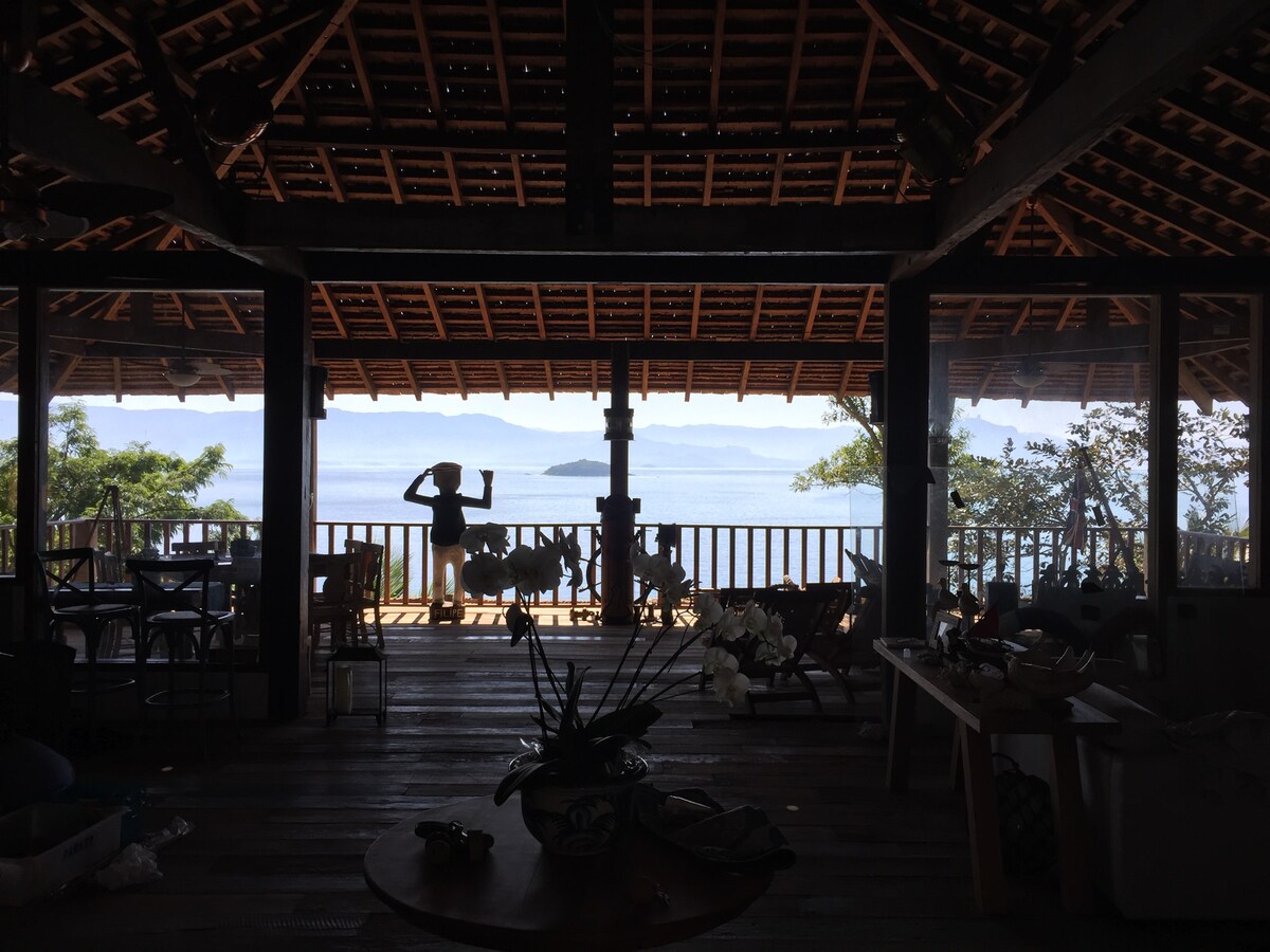 Exklusiver Raum, schöner Blick auf das Meer von Ilha Grande. Private, harmonische und angenehme Umgebung. Integrado a Mata Atlântica, Pôr-do-Sol und kristallklares Wasser als Landschaft. Einzigartiger Zugang zum Deck, Panoramablick. Um dorthin zu gelangen, musst du in die Stadt Angra dos Reis kommen. Sie steigen in ein FlexBoat-Schnellboot nach Praia Vermelha und Araçatiba auf Ilha Grande (30 Minuten Fahrt, Kosten 75 Reais pro Person). Hier gehst du am He'Nalu-Pier von Red Beach an Land. Willkommen