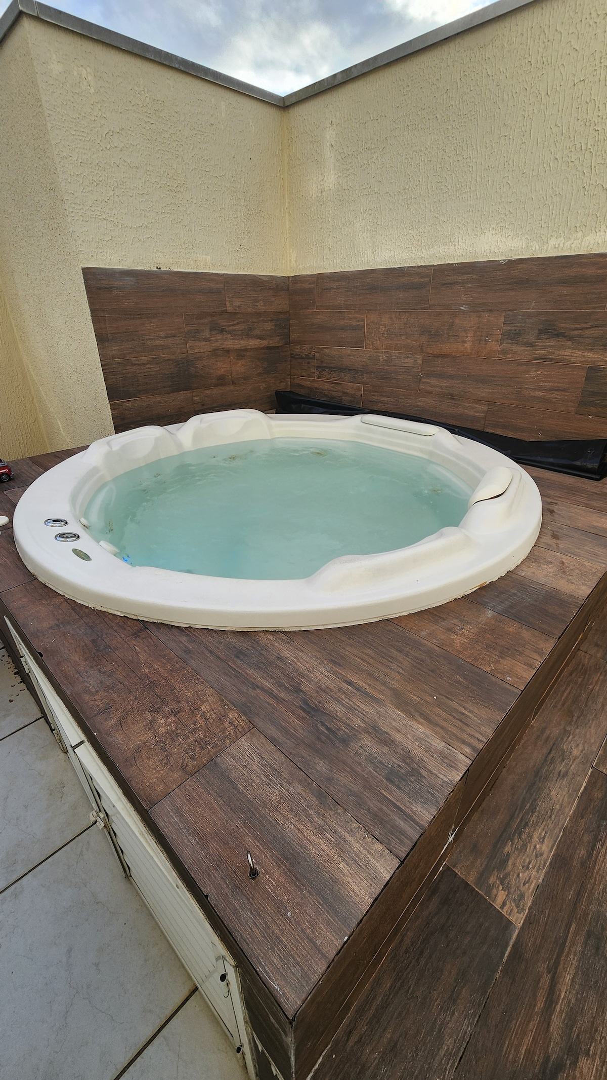 Cobertura duplex pé na areia no condomínio clube Ilhas do Atlântico, com jacuzzi privativa, área gourmet com churrasqueira e vista lateral para o mar. São 2 quartos, 2 banheiros, ar-condicionado em todos os ambientes, cozinha equipada, Wi-Fi e 2 vagas de garagem cobertas. O condomínio oferece piscina, quadras, playground e acesso à praia. Aceita pets e acomoda até 8 hóspedes, com mais conforto para 4 pessoas. Ideal para famílias, casais e grupos em busca de descanso, lazer e ótima localização.