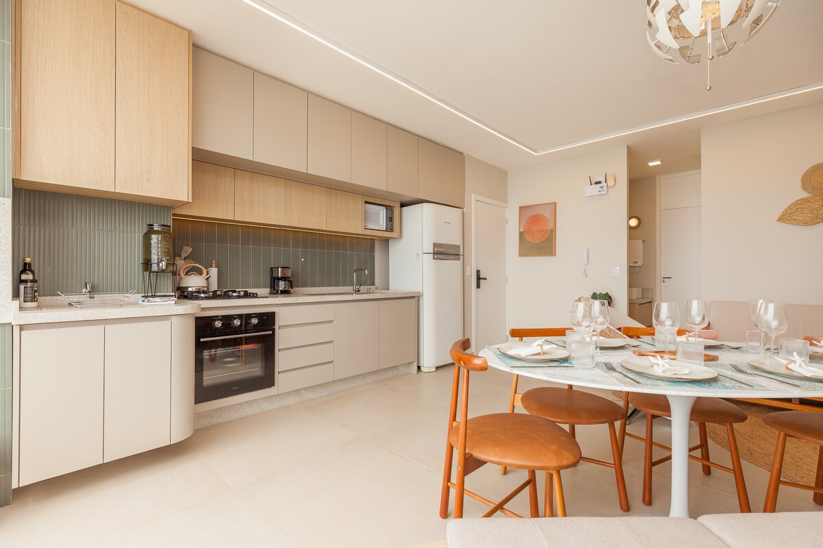 This apartment is an incredible experience. On the beach and overlooking the sea in the best location of Praia Brava - Caiobá PR. It has 3 comfortable rooms, equipped with air conditioning, 2 bathrooms, TV room combined with dining room and balcony with table and chairs, kitchen with new appliances, laundry with machine and dryer. Wi-Fi, elevator, covered garage and 24 hour doorman. Ideal for couples and families. Spacious, bright and decorated to be your beach home!