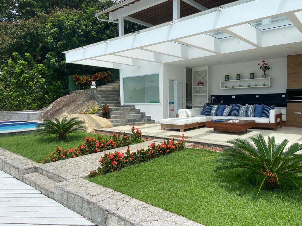 Casa exclusiva de alto padrão no condomínio Portogalo em Angra com vista deslumbrante para Ilha Grande, piscina com borda infinita, área gourmet com churrasqueira, forno de pizza, cervejeira, sinuca. São 5 suítes com ar-condicionado e Smart TV, sala ampla com TV 75”, Wifi/Starlink e cozinha completa. Condomínio seguro. Serviços extras como camareira, cozinheira, lanchas e espaço VIP com telão também disponíveis. ⚠️Importante: Pedimos que leiam a seção de regras antes de concluir a reserva.