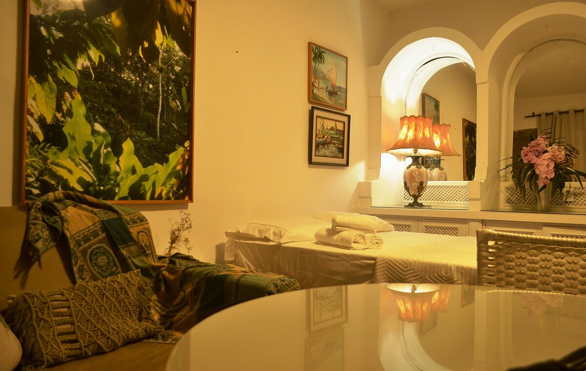 • Es ist 22 m² groß und bietet Platz für bis zu 4 Personen. Zugang über Treppen (2. Stock). Neben Bad und Küchenzeile (Kühlschrank, Mikrowelle und Küchenutensilien) verfügt es über 1 Doppelbett, 1 Schlafsofa, TV, Klimaanlage, Kissen, Tisch, Stühle usw. Das Flat wurde vor kurzem komplett renoviert. Die Wohnanlage Jubiabá liegt in Olivença.