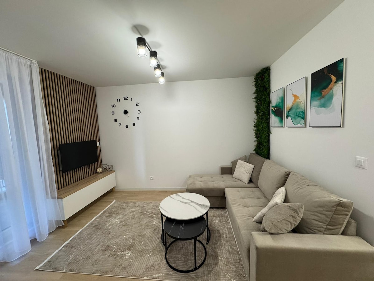 Erlebe Komfort und Ruhe in meiner durchdacht eingerichteten Wohnung in Ilidža, Otes. Diese Neubauwohnung liegt in einer ruhigen Gegend in der Nähe des Flusses und wurde so gestaltet, dass sie sich wie zu Hause anfühlt, mit allem Notwendigen für einen angenehmen Aufenthalt. Entspanne dich auf dem Balkon, genieße das gemütliche Interieur und erkunde die nahegelegenen Geschäfte und Cafés. Das Zentrum von Ilidža ist nur einen kurzen Spaziergang entfernt, was dies zum perfekten Ausgangspunkt für die Erkundung von Sarajevo macht. Garagenparkplätze sind enthalten. Die Wohnung bietet einen geräumigen Wohnbereich, moderne Geräte und gemütliche Schlafzimmer.