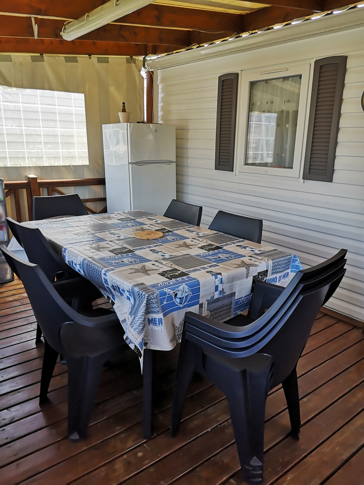 Charmantes Mobilheim in einem privaten Anwesen von Bois d 'amour in DINARD mit Pool 3 separate Schlafzimmer 1 Badezimmer 1 ausgestattete Küche mit 1 großem Kühlschrank 1 Gasherd 1 Backofen 1 Mikrowelle 1 Wohnzimmer 1 WC 1 große Terrasse mit Außenküche 1 Rasenbereich 1 privater Innenhof pergola mit Vorhang und Beleuchtung