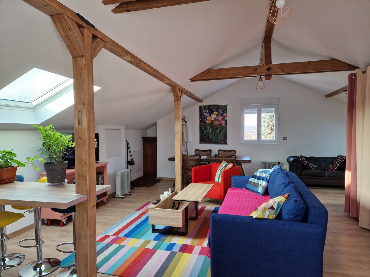 Meublé de tourisme classé 5* (5-Sterne-klassifizierte Touristenunterkunft) URBAN COMFORT ist eine schöne geräumige, klimatisierte und voll ausgestattete 111 m2 Wohnung im historischen Herzen von Mulhouse, nur wenige Schritte von Geschäften, Restaurants und Museen entfernt. Walking Score 96 „Walker's Paradise“, gesicherte Tiefgarage mit direktem Fahrstuhlzugang, komfortable Betten und Kissen, große Regen-/Kaskadendusche für 2, Ultra-Highspeed-Internetzugang, ULTRA-HD-Smart-TV, Netflix, Bücher und Spiele. Schlafplätze für 5 Gäste, aber maximal 4 ERWACHSENE + 1 Baby oder Kleinkind Fühl dich wie zuhause :)