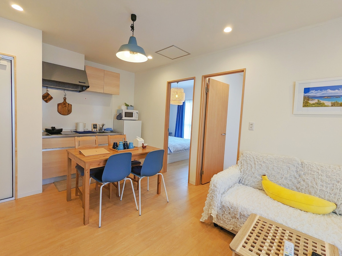 蓝色海洋风・治愈与放空|天下茶屋5分|关空直达|通风透光|2卧室+大客厅|办公桌|Netflix
