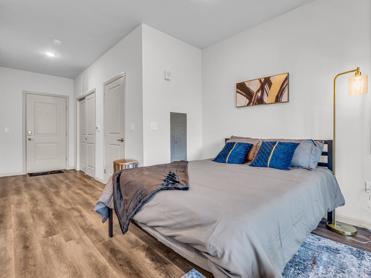 Deine urbane Oase im Herzen der Innenstadt! Dieser stilvolle Rückzugsort ist dein zweites Zuhause mit zwei 65-Zoll-Fernsehern! Genieße ein Kingsize-Bett mit der Option eines Schlafsofas und ein ausklappbares Gästebett für 2 weitere Gäste! Sicherheit trifft auf Komfort, da du nur wenige Schritte vom Gainbridge Fieldhouse, dem Lucas Oil Stadium und dem Kongresszentrum entfernt bist. Erkunde die Mass Ave, Museen und eine Reihe von Restaurants und Nachtleben, die alle zu Fuß erreichbar sind. Dieses Juwel wird nicht lange stehen, buche jetzt für einen unvergesslichen Aufenthalt!