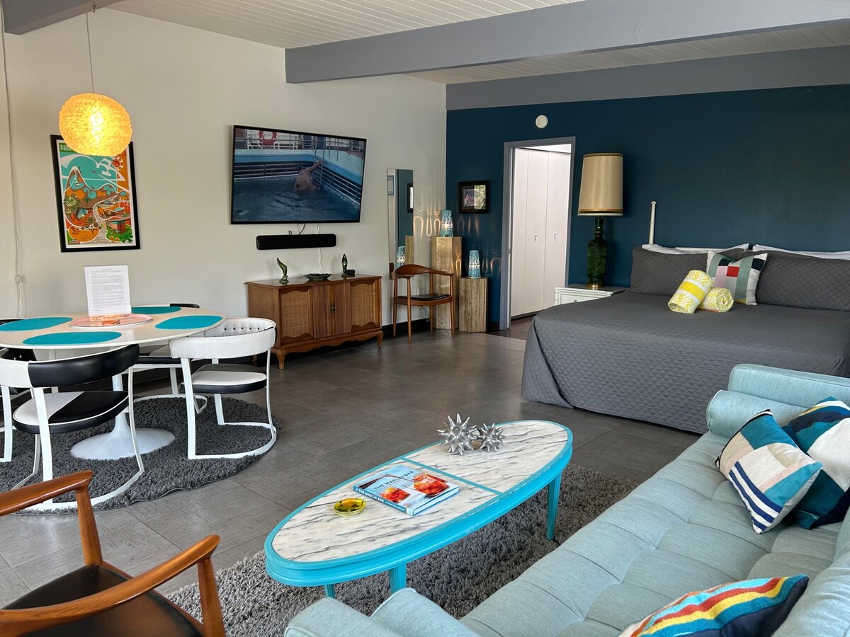 Genieße das freie Leben in „The Kasbah“, einem Designer-Haus aus der Mitte des Jahrhunderts in der Nähe von Downtown Palm Springs. Tauche in den beheizten Pool ein, genieße Mittagessen im Freien und lass dich im Haus von der Bergkulisse umgeben massieren. Komfortabel und einladend, mit eleganten Anspielungen auf Marokko, genieße das Beste des kalifornischen Lebens. Mi casa es su casa! Innenstadt – 7 Minuten Fahrtzeit Palm Springs Art Museum – 8 Fahrminuten Palm Springs Aerial Tramway – 10 Fahrminuten Schaffe mit uns bleibende Erinnerungen in Palm Springs und erfahre unten mehr!