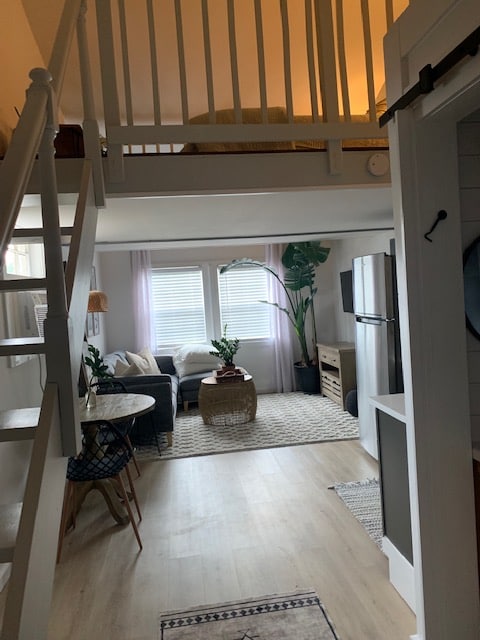 Das Charleston Loft! Ist zentral gelegen, 10 Minuten vom Folly Beach und 10 Minuten vom dt Charleston entfernt. Das Loft bietet dir alles, was du suchst. Das Apartment-Loft verfügt über eine brandneue Tempur-Pedic-Kingsize-Matratze für einen erholsamen Schlaf. Die Küche verfügt über einen Toaster, eine Heißluftfritteuse und eine Kochplatte mit einer Bratpfanne und einem Topf für begrenzte Kochbedürfnisse. Es gibt auch einen großen Kühlschrank für deine Lebensmittel oder Essen zum Mitnehmen. Wir denken, dass dir auch der private Garten draußen gefallen könnte.