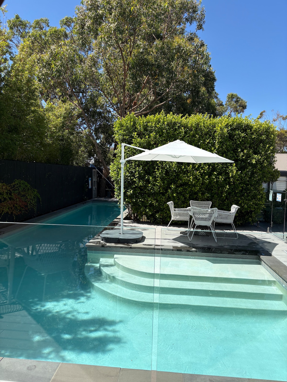 Easy walk only 400 m to beach & jetty, 700 m to town centre, restaurants & hotels. You’ll love our location, our private and peaceful semi tropical garden setting, separate and fully self contained studio, out look onto garden. We welcome double vaxed guests and are are required to see your verification certificate. Good for couples, solo adventurers and business people. 10 o’clock check out. We have very friendly small dog. No cleaning costs. No breakfast is supplied. No dogs sorry.