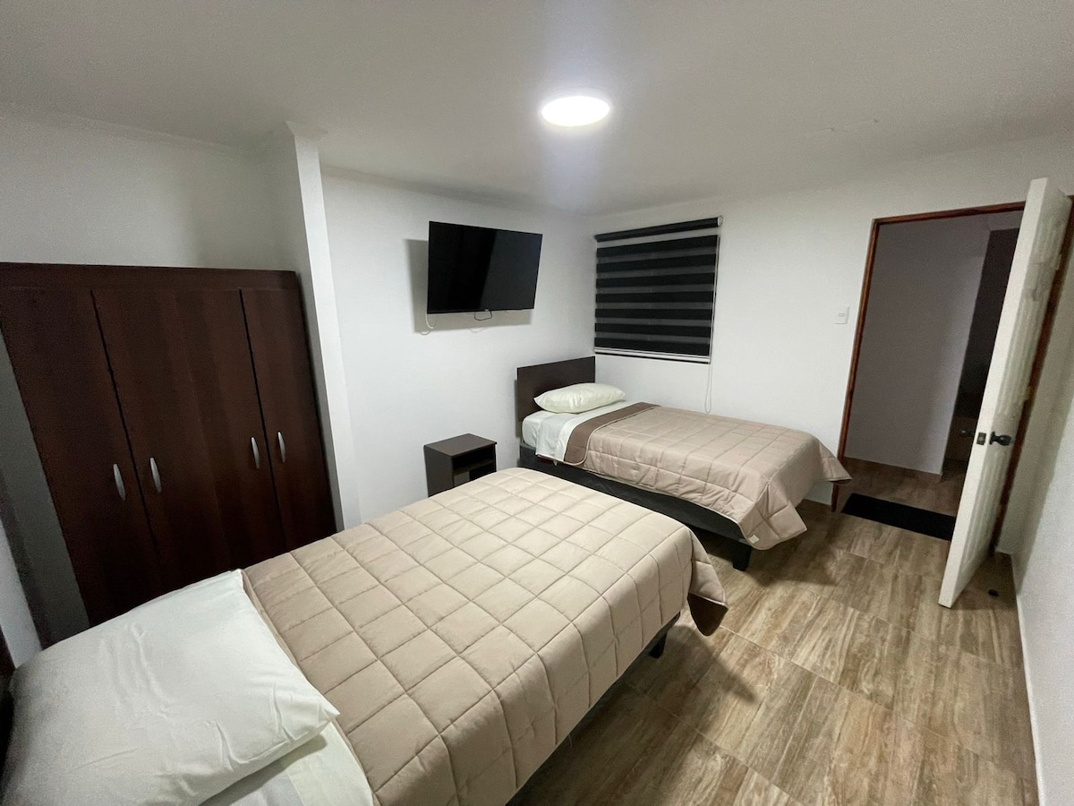 Wohnung im zweiten Stock, mit eigenem Eingang. Nicht haustierfreundlich. Ausgestattet mit Küche, Wohnzimmer, 2 Schlafzimmer, 1 Badezimmer und Waschküche. (Persönliche Badetücher sind nicht inbegriffen). Keine Parkplätze. Nur wenige Schritte von Fast Food, Sushi, Pizzerien und Teestuben entfernt. In der Nähe von Stränden, Casino, Supermärkten, Mall Plaza Iquique und der Arturo Prat University. Ideal für Erholung oder Arbeit.