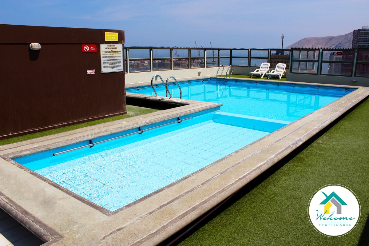 Arriendo en Iquique Departamento a 2 cuadras de Playa Cavancha, ubicación privilegiada para disfrutar del mar y la ciudad. - 1 habitación - 1 baño - Cocina equipada - Buena conectividad para llegar a cualquier lugar de la ciudad - Almacenes y negocios cercanos - Estacionamiento gratuito - Wi-Fi de alta velocidad - Sábanas y toallas incluidas Disfruta de la playa Cavancha y la vida nocturna de Iquique en un departamento cómodo y bien equipado. ¡Reserva ahora y vive una experiencia única!