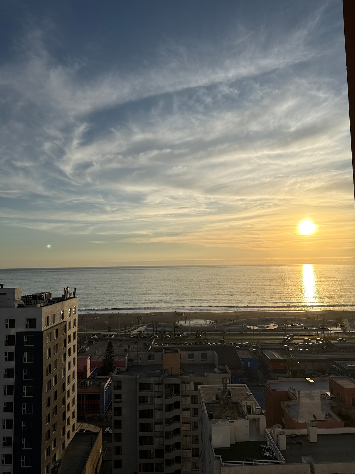 Wohnung mit dem besten Blick auf Iquique zum Cavancha Beach aus der 12. Etage. Nur 15 Meter vom Strand entfernt. Geräumiges Schlafzimmer mit „Kingsize-Dett“, amerikanische Küche. Voll ausgestattet! Private Tiefgarage mit Fernbedienung, das Gebäude ist sehr sicher mit geschlossenen Kameras. In der Nähe des „Jumbo“ -Supermarkts, des „Dreams Game Casino“ und der Halbinsel „Cavancha“, wo sich die besten Restaurants und Bars der Stadt befinden.