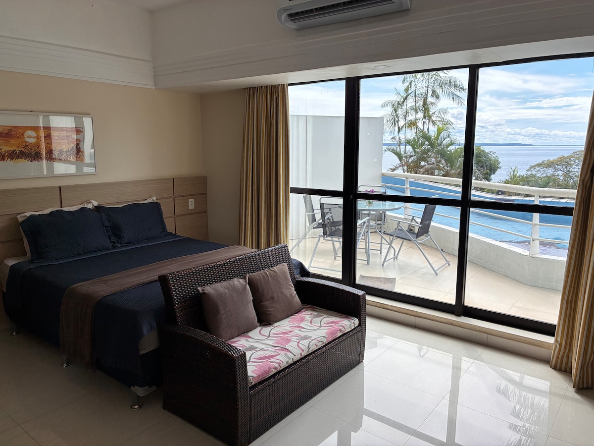 Studio de luxo com vista deslumbrante do rio.