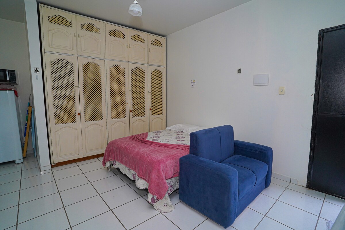 Blue, inspiring and relaxing. We invite you to enjoy this fully equipped 25m² studio, superbly located in the Eldorado neighborhood, on a quiet and safe street, close to the Arena da Amazônia, Ponta Negra, and the historical and cultural center of Manaus. A cozy and intimate space, suitable for your work, tourism, and leisure days. It offers a calm and familiar environment, perfect for your stay: - Equipped kitchen - Bathroom - Wi-Fi - Smart TV and air conditioning - Comfortable bed