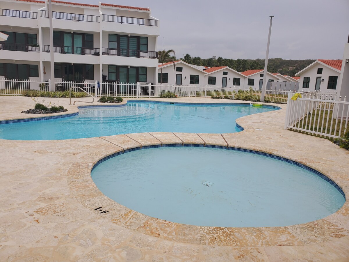 Lehne dich zurück und entspanne dich – in dieser ruhigen, stilvollen Unterkunft. Komm an diesem unvergleichlichen Rückzugsort wieder in Einklang mit der Natur. Strand- und Poolfront, 3-stöckiges Stadthaus, voll möbliert, Aussichtsplattform im Obergeschoss mit Grill, Sitz-/Essbereich, Neubau im März 2023 fertiggestellt, zentriert zwischen Playa Jobos und Playa Shacks, Privater Strandzugang, ideale Lage zum Surfen, Kitesurfen, Tauchen, Schnorcheln. Top-Einheit in neuer, abgeschlossener Wohnanlage. 2 vollwertige Schlafzimmer, 1,5 Bäder, Futon kann zum Schlafen verwendet werden, bis zu 6 Personen.