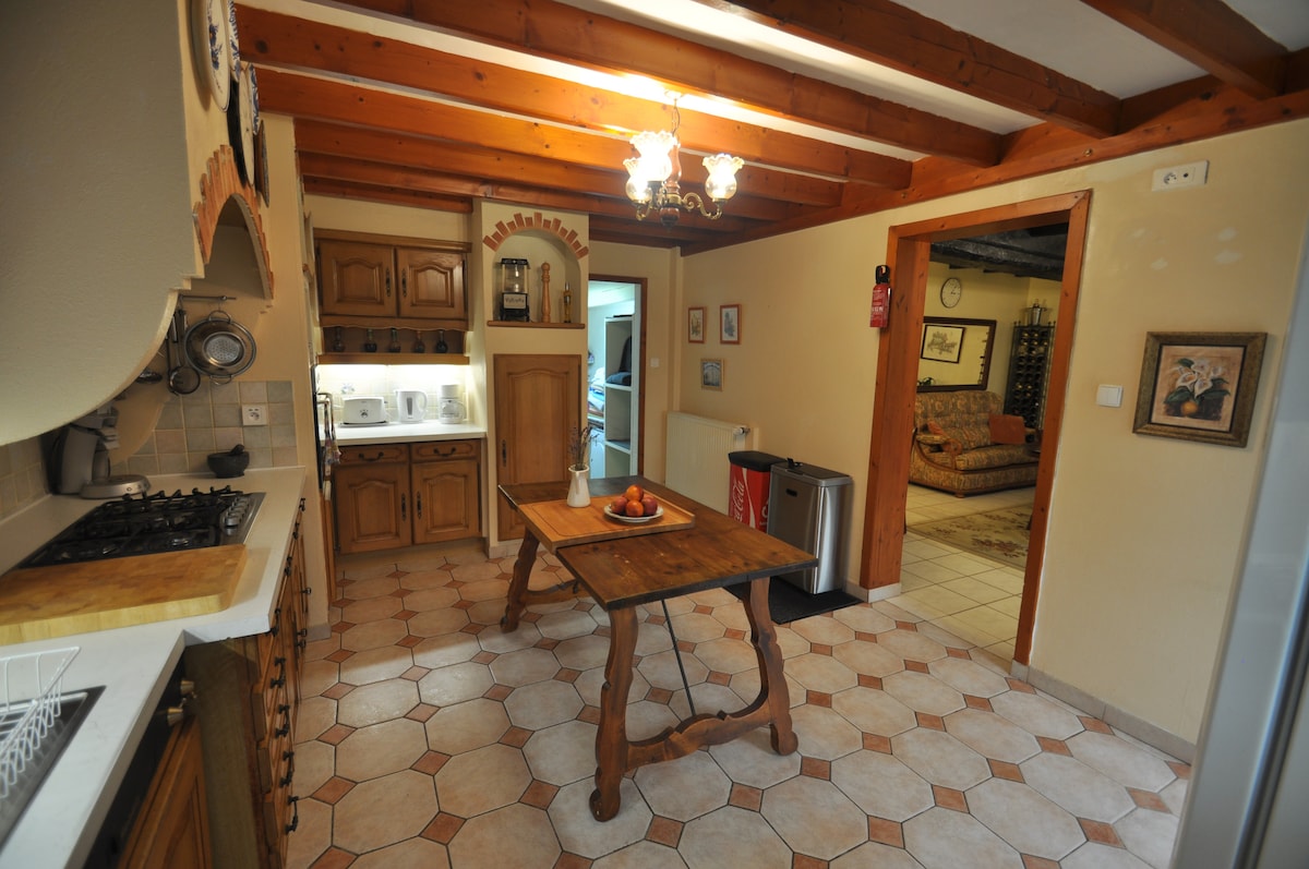 Détendez-vous dans ce logement calme , vacances, week end . ouvriers, VRP . Équipé d'une cuisine, avec plaque vitroceramique, refrigerateur, congelateur, micro onde et four. Petit dejeuner sur demande Salon: canapé convertible, TV, Wifi gratuite. Entrée independante par un escalier dans une verrière, salle de bain avec douche 90x90 un lavabo sur un meuble, sèche serviettes wc indépendant. À l'exterieur salon de jardin dans une cour réservée aux voyageurs . barbecue, Belle balade a pied