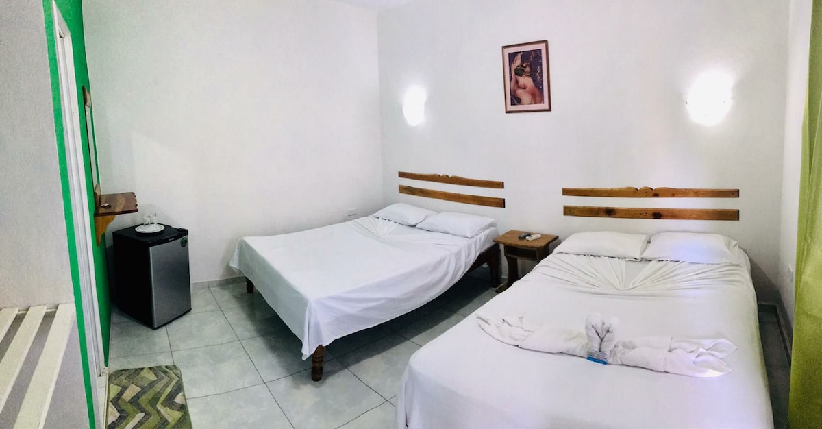 Unser Haus liegt nur wenige Meter vom Meer entfernt, in Playa Larga, Bahia de Cochinos. Dieses Zimmer verfügt über einen separaten Eingang, eine Klimaanlage , eine Minibar und ein eigenes Badezimmer. 2 Doppelbetten mit maximaler Kapazität für 4 Personen. Von unseren Terrassen aus kannst du eine ausgezeichnete Aussicht genießen. WIR HABEN EINEN STROMGENERATOR!!!