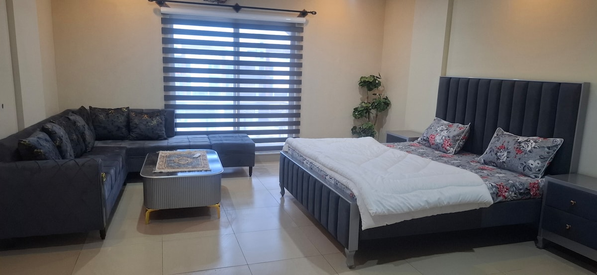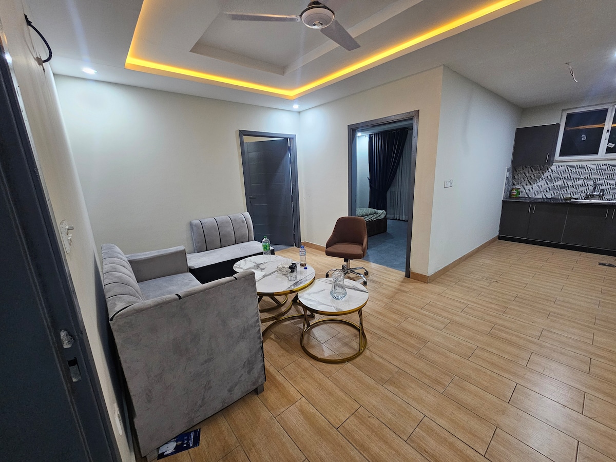 Welcome to your stylish home in the heart of Rawalpindi! This modern 1-bedroom apartment is perfect for couples, business travelers, and solo guests looking for a comfortable stay in Rawalpindi/Islamabad. 🛏 Comfortable queen bed 📶 High-speed WiFi for work & streaming ❄️ 24/7 Air conditioning 🍳 Fully equipped kitchen 🚗 Free on-site parking 📺 Smart TV for entertainment Located in a vibrant neighborhood with cafés, restaurants, and central commercial Bahria Town.