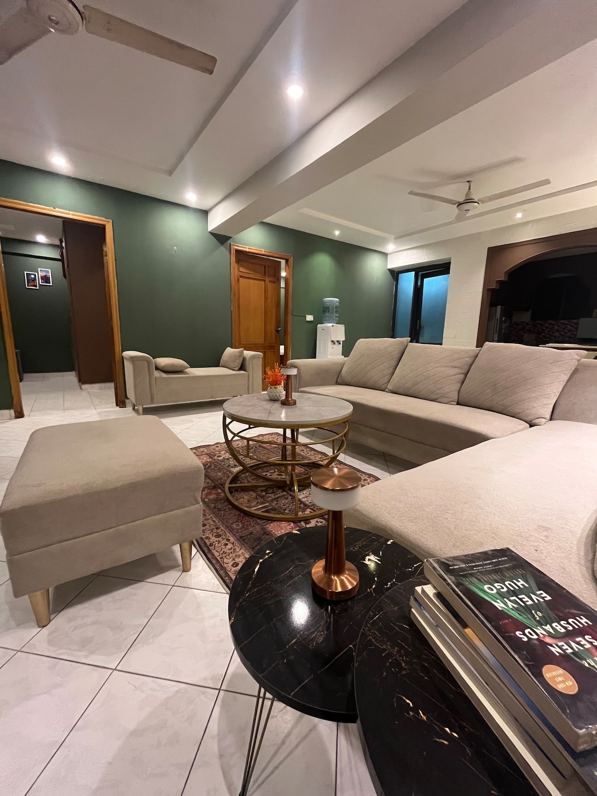 Willkommen in diesem bescheidenen, aber gemütlichen und lebendigen Raum. Im neueren Herzen von Islamabad gelegen, haben wir dieses gemütliche Apartment eingerichtet, das perfekt für Paare/ kleine Familien/Geschäftsreisende/Touristen ist, die einen ruhigen und komfortablen Besuch in Islamabad suchen. Die künstlerischen Dinge verleihen deinem Aufenthalt Geschmack, der ansonsten ruhig ist. Der Balkon bietet eine schöne Aussicht. Beide Seiten der Stadt befinden sich in unmittelbarer Nähe, sowohl in der Nähe des Zentrums von Islamabad als auch von DHA und der Stadt Bahria.