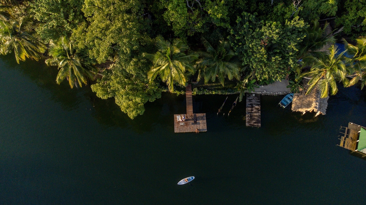 Ideal für Familien, Freundesgruppen oder Reisende zu zweit vor dem Peten Itza-See mit Strand, der für Kinder geeignet ist. Ausgestattet und mit komfortablen Räumen, damit du dich wie zuhause fühlst. Draußen kannst du ein Naturparadies mit atemberaubender Aussicht auf den See und wunderschönen Sonnenuntergängen genießen. Wir befinden uns neben dem Reservat des Archäologischen Parks Tayasal, wo du den Mirado del Rey Canek und einen Holzweg besuchen kannst, der dich zum regionalen Museo Mundo Maya führt. Ein unvergessliches Erlebnis.
