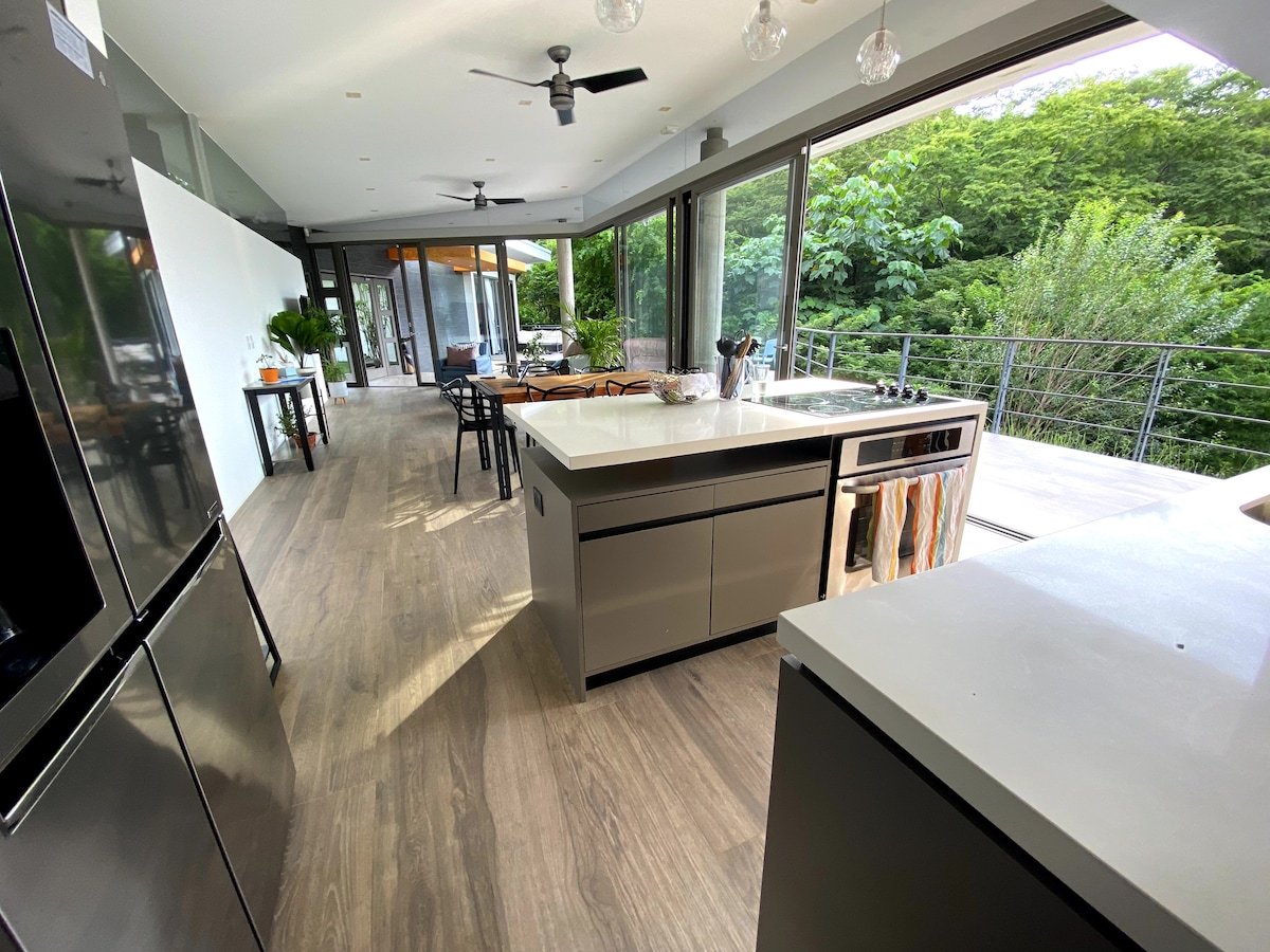Nouvellement rénovée. Séjournez dans une superbe villa avec piscine à débordement privée, située dans une communauté sécurisée, proche des plus belles plages du Costa Rica. Entièrement rénovée en 2025, elle offre confort moderne et vue imprenable. • 2 chambres climatisées avec salles de bain privées • Espace ouvert avec cuisine équipée et salon cosy • Salle à manger extérieure pour admirer des couchers de soleil spectaculaires • Wi-Fi, alarme et parking clôturé