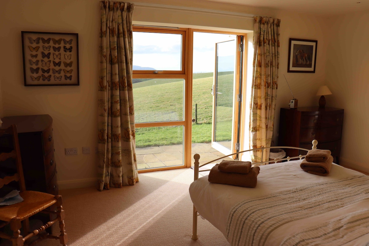 Zweibettzimmer, Sitzecke, Frühstücksecke und Dusche. Atemberaubende Aussicht auf die Lochranza Bay. Bitte beachte, dass es 0,3 Meilen einen rauen Hügelweg hinauf geht. Parkplätze am Fuß des Weges. In der Nähe des Arran Coastal Way und der Fähre Lochranza – Claonaig. Bushaltestelle 0,8 Meilen. Mini-Kühlschrank, Mikrowelle, Einzel-Herd, Wasserkocher, Toaster. Frühstück wird bereitgestellt; Müsli, Tee, gemahlener Kaffee, Brot, Butter, Milch, Konserven. Glutenfrei/vegan, wenn im Voraus angefragt. Angrenzend an das Haus des Eigentümers und das Künstleratelier. Wir sind nebenan, wenn du Hilfe/Ratschläge benötigst.