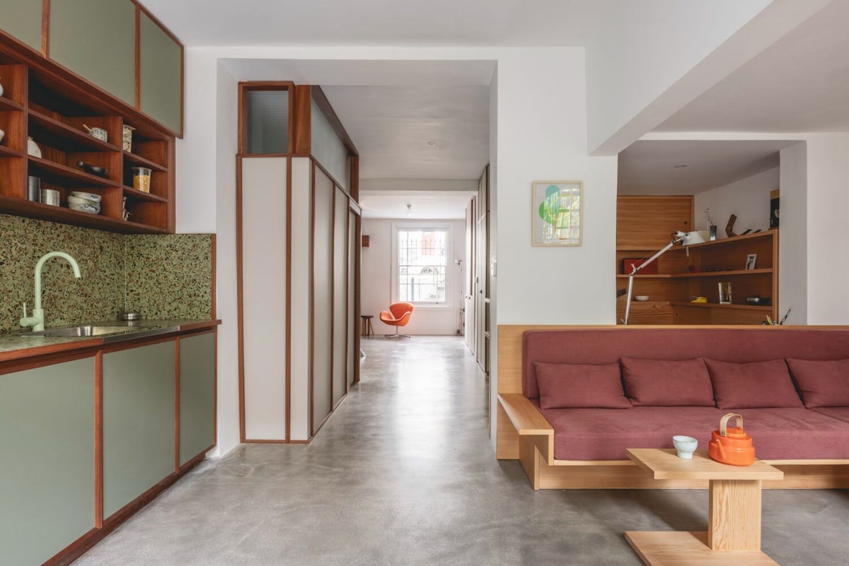 KURATIERTES ANWESEN PRÄSENTIERT: Diese Wohnung mit einem Schlafzimmer befindet sich im gesamten Erdgeschoss dieses wunderschön restaurierten georgianischen Reihenhauses mit zwei denkmalgeschützten georgianischen Reihenhäusern. Riesige Doppelfenster lassen viel Licht in die Küche und das geräumige Wohnzimmer. Das Apartment wurde liebevoll von einem Innenarchitekten renoviert, und die Liebe zum Detail zeigt sich durchgehend, mit stilvollen Möbeln und modernen Akzenten, die Gästen ein schönes temporäres Zuhause bieten.