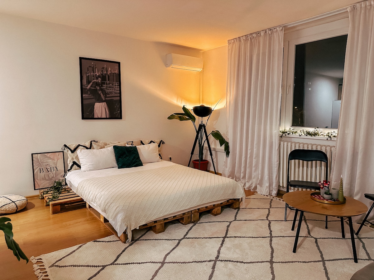 Eine gemütliche Wohnung bietet alles, was du für einen angenehmen Aufenthalt brauchst. Wir haben jeden Aspekt des Komforts unserer Gäste durchdacht, daher haben wir ein großes und komfortables Bett, eine gemütliche Sitzecke mit Kabel-TV und WLAN, eine voll ausgestattete Küche und ein Badezimmer zur Verfügung gestellt. Komfortable und moderne Wohnung für bis zu 4 Personen, bestehend aus Schlafzimmer mit großem und komfortablem Bett, Wohnzimmer mit Schlafcouch zum Entspannen, voll ausgestatteter Küche, Esszimmer und Bad. Die Wohnung verfügt über Kabelfernsehen, Klimaanlage und WLAN.
