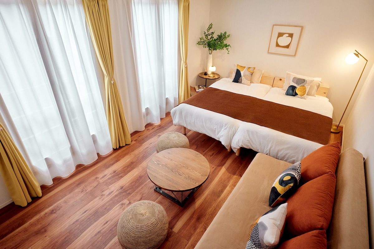※新規オープンにつき特別価格でご提供中です。ぜひこの機会にご利用ください。 お花茶屋駅から徒歩わずか1分。成田空港・羽田空港からもアクセス良好な東京下町に位置する、静かで安心・快適なプライベート滞在空間です。 スカイツリーや上野、浅草へも電車で約20分と、ご家族での観光や出張にも便利です。 【お部屋の特徴】 ・29㎡のワンルーム ・最大4名様滞在可能 ・ダブルベッド(140cm幅)×1台 ・ソファベッド(展開時140cm幅)×1台 ・モダンでシンプルなインテリア 【充実の設備】 ・高速Wi-Fi ・プロジェクター ・システムキッチン(IH)、冷蔵庫、電子レンジ、調理器具一式 ・温水座便器 ・洗濯機/乾燥機/エアコン/ドライヤー ・タオル、シャンプー・コンディショナー(リンスイン)、ボディソープ、フォームソープ完備 【安心のセキュリティ】 ・ビル1階エントランス:暗証番号式オートロック ・部屋:スマートロック導入 【周辺情報】 ・コンビニ・飲食店・スーパー・薬局:徒歩1分 ・浅草・上野・スカイツリー:電車で約20分 ・東京駅・秋葉原・銀座・池袋:電車で約30分
