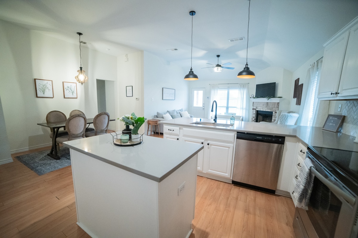 Helon's Haven hat alle Annehmlichkeiten von zu Hause... Wir sind stolz darauf, Ihnen alles zu bieten, was Sie brauchen. VOLL möbliert, 2 Doppelbetten und 2 Bäder für bis zu 4 Personen. Eingebettet in die Stadt Waxhachie in einem Garden Home Viertel bietet die Lage maximalen Komfort. Genießen Sie Ihren morgendlichen Kaffee auf dem überdachten Deck und genießen Sie den komplett eingezäunten Hinterhof, werden Sie eins mit der Natur & entspannen Sie sich auch dort nach einem ganzen Tag. Genießen Sie! Bereiten Sie Mahlzeiten im großen Küchen- und Essbereich zu und servieren Sie sie, oder gönnen Sie sich einfach einen Happen an der Theke.