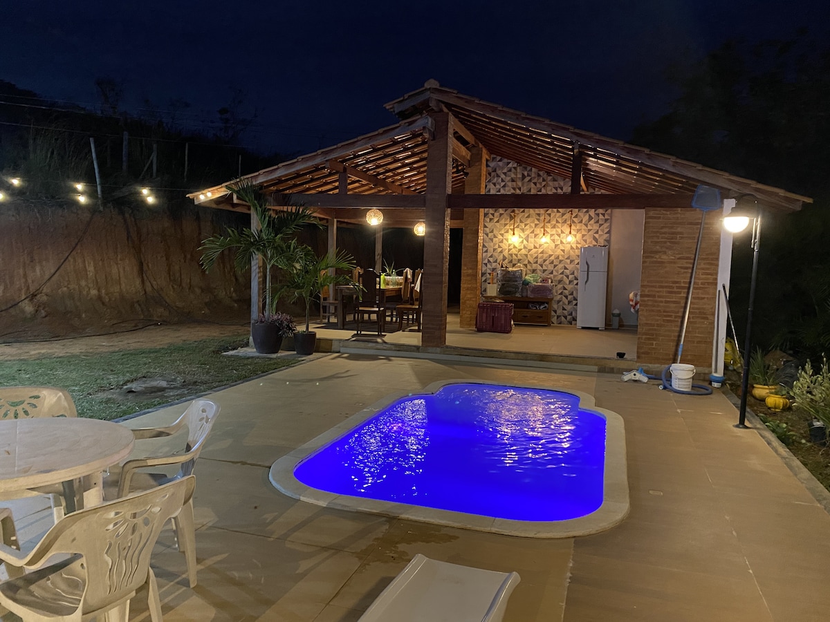 Viel Spaß mit der ganzen Familie an diesem stilvollen Ort. Geräumiges Haus, ideal für diejenigen, die Komfort wünschen und großartige Momente der Freizeit genießen möchten. Es verfügt über einen Pool für Erwachsene und Kinder, eine große Veranda mit einem Gourmet-Bereich, der Freunde und Familie in der Nähe des Grills zusammenbringt, ohne jemanden auszulassen. Die Veranda hat auch einen Tisch mit 08 Sitzplätzen, ein Set von 02 und 03 rustikalen Sofas mit wasserdichten Kissen. Alles im höchsten Stil eingerichtet!