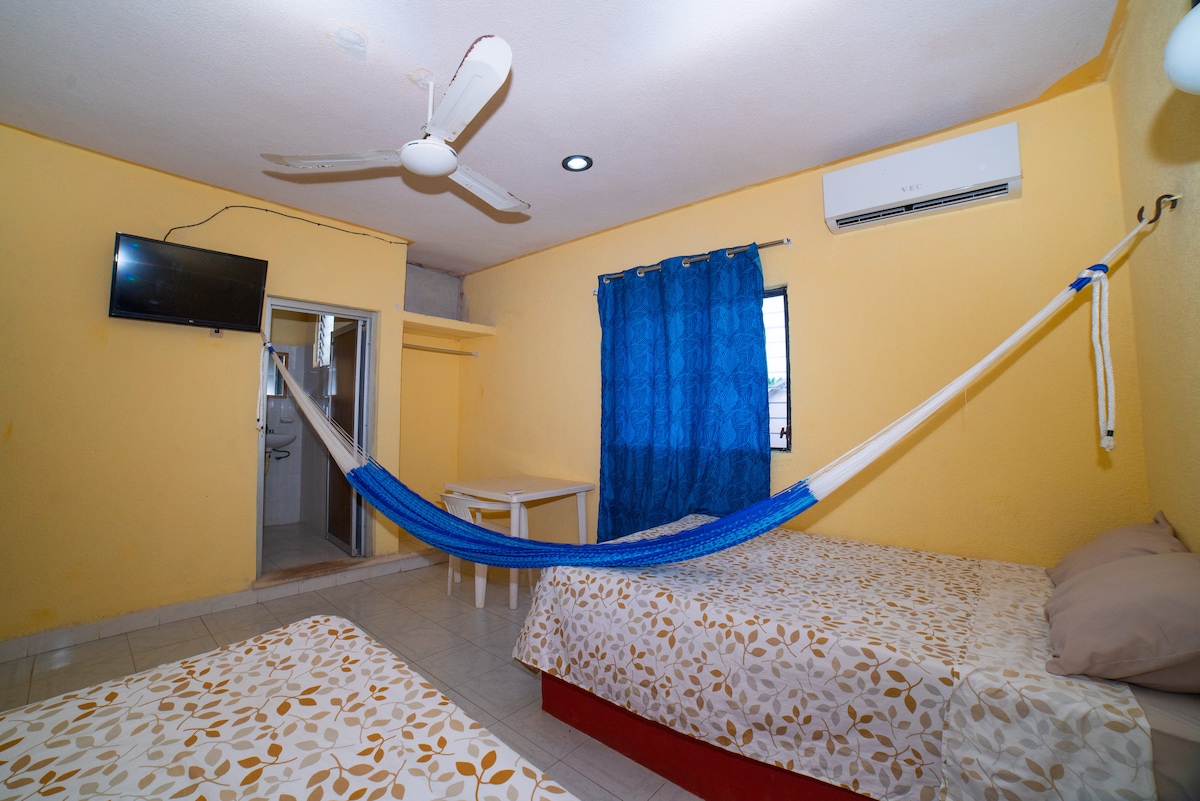 Das Hotel&Museo Aldea Maya Toktli Origen ist ein Ort in Verbindung mit der Natur, intimen, kulturellen und Selbsterkenntnis. Enthält: Zimmer | Starlink Internet | Casa Maya Museum Tour & Sustainable Hotel | Izamaleña Culture Virtual Guide. Casa Maya 3 Culturas hat ein Doppelbett, einen Schreibtisch und eine Hängematte. Duschen Sie direkt neben einem Kokospalmenbaum und genießen Sie die Natur. Im Raum ist die Decke 1,5 mal höher als die Wände.