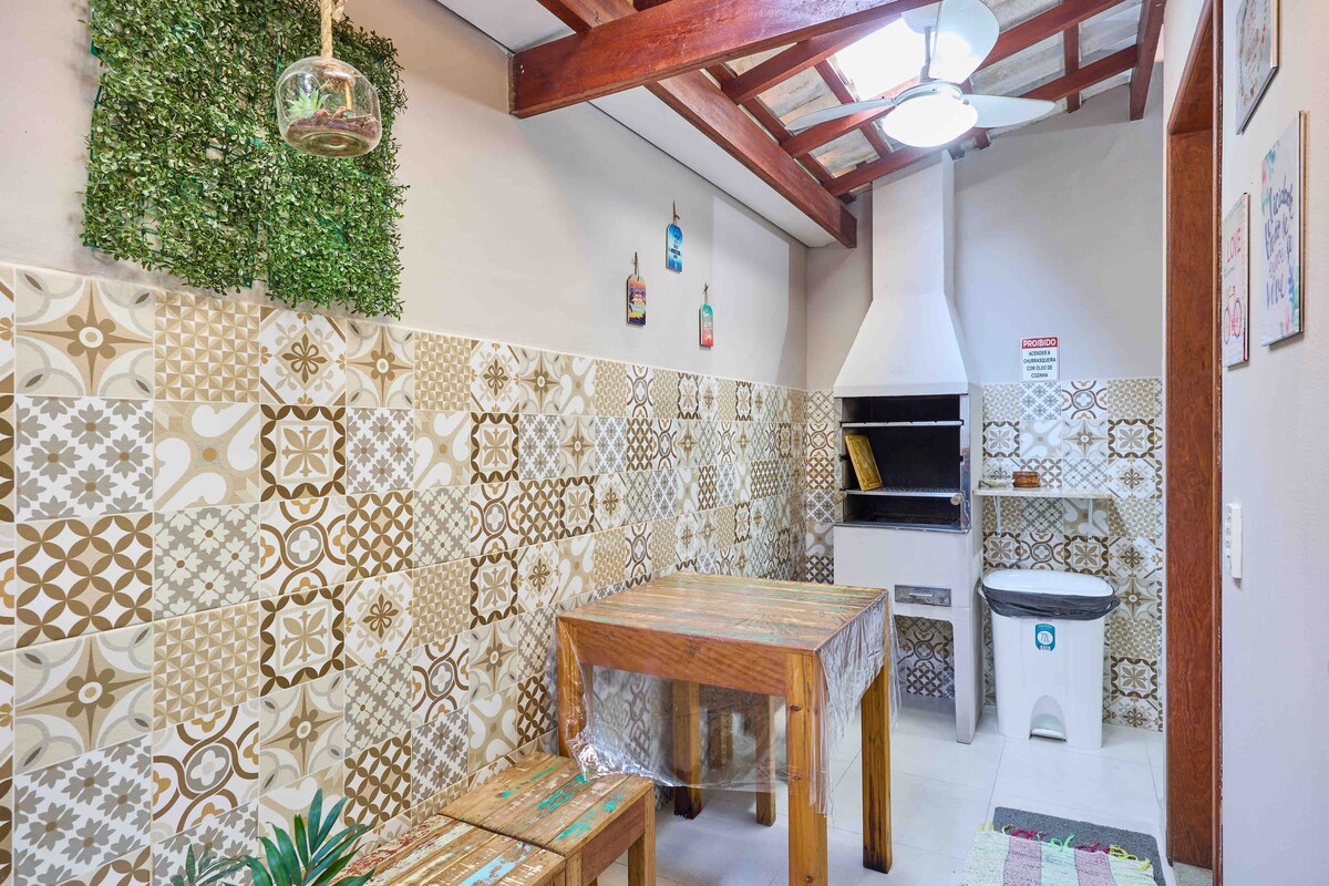 Das Haus von Majô liegt nur 5 Gehminuten vom Strand von Jabaquara und 25 Gehminuten vom historischen Zentrum entfernt, so dass Sie die Ruhe des Aufenthalts an der Küste genießen können, ohne weit vom Trubel des Zentrums entfernt zu sein. In der Nachbarschaft gibt es eine Bäckerei und kleine Lebensmittelgeschäfte. Der Strand ist von Mangroven, der Wiege des Meereslebens, und hat daher ein flaches und ruhiges Meer, das die perfekten Bedingungen zum Üben von Stand-up-Paddling und Kajakfahren bietet. Es gibt mehrere Kioske, wo Sie zu Mittag und zu Abend essen und mit den Füßen im Sand etwas trinken können.