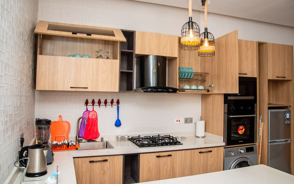 Pinewood Suite , ein modernes Apartment mit 2 Schlafzimmern, das absichtlich mit dir ausgestattet ist. Die Holzarbeiten sind einzigartig und detailliert, um unseren Gästen ein unvergessliches Erlebnis in einer sauberen Umgebung zu bieten. Es ist mit Smart-TV, intelligenter Tür, schnellem und effizientem WLAN, Swimmingpool, Tischtennis, Snooker-Tisch, Standby-Generator, solarbetriebenen Wechselrichter-Klimaanlagen, Warmwasserbereitern und einem voll ausgestatteten offenen Küchenkonzept ausgestattet. Viel Spaß mit der ganzen Familie an diesem stilvollen Ort.