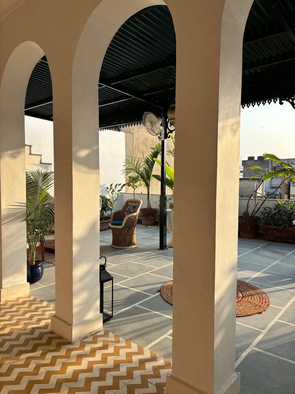 „The Golden Door“ ist ein künstlerisch gestaltetes Zimmer mit einem angeschlossenen Badezimmer auf einer privaten Terrasse mit Panoramablick auf die Aravalli-Hügel. Diese Unterkunft ist ideal für Paare, Alleinreisende und Geschäftsleute und verbindet nahtlos Ästhetik und Funktionalität. Seine zentrale Lage gewährt einfachen Zugang zu den wichtigsten Sehenswürdigkeiten. Im Wesentlichen geht „The Golden Door“ über herkömmliche Aufenthalte hinaus. Mit seiner zentralen Lage, dem künstlerischen Design und dem Komfort bietet es einen einfachen, aber einzigartigen Aufenthalt.