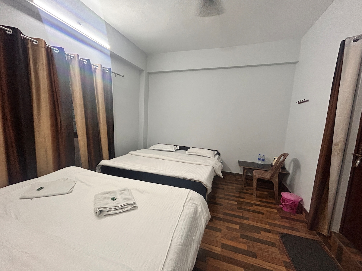 Geräumige 2-Zimmer-Wohnung in Rudraprayag Unser Apartment verfügt über ein Dreibettzimmer und ein Vier-Schlafzimmer mit jeweils angeschlossenen Badezimmern im englischen Stil. Außerdem steht ein gemeinsames Badezimmer im indischen Stil zur Verfügung. Erlebe einen ruhigen und komfortablen Aufenthalt bei uns - wir freuen uns darauf, dir zu dienen! Gemütlicher Aufenthalt Übernachte in unseren komfortablen Standardzimmern neben dem Hotel Govind an der Autobahn Rudraprayag. Genieße malerische Ausblicke, grundlegende Annehmlichkeiten und ein ruhiges Ambiente - perfekt für Reisende, die die Region erkunden.