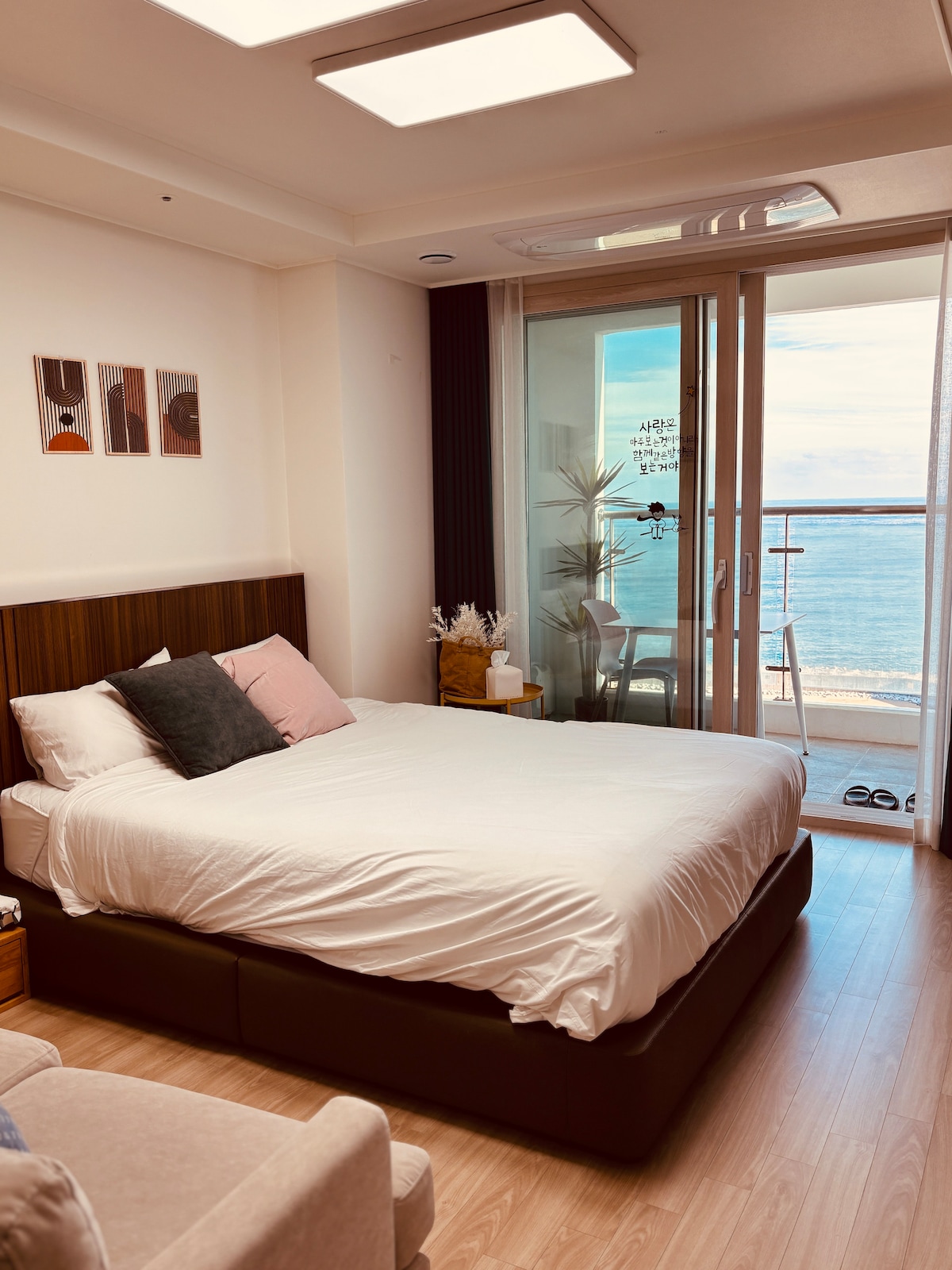 ✨12월 18일까지 오픈할인🎉 ✔️ 무엇보다 숙면에 초점을 맞췄습니다! 매트리스에 메모리폼을 더하고, 부드러운 호텔 침구, 제가 써본 중 가장 편했던 베개를 두었습니다. 빛에 예민하신 분들을 위한 암막커텐은 물론입니다! 이중창으로 방음도 최고입니다! ✔️등대해수욕장까지 도보 30초! 밤에는 발코니에서 파도소리를 듣고, 아침에 일어나면, 파란 바다와 하늘뷰에 매일 감탄하실거예요!(압도적인 침대뷰) 매일 다른 모습의 바다를 내려다보며 힐링할 수 있는, 아늑한 감성을 오래 즐겨보세요. ✔️ 속초의 중심지 모든 관광지가 10km 이내로 가장 편리한 위치에 있어요💕 from 소야스테이