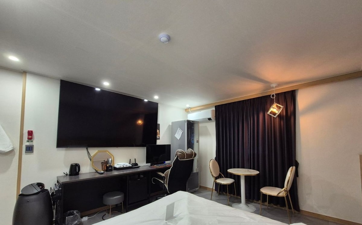 7가지 객실 타입과 넓은 주차공간, 고급 원두커피와 음료를 제공하며, 모든 객실은 다양한 OTT와 드라이기, 고데기, 최신식 비데가 구비되어 있어 편안한 쉼을 제공합니다. - 이코노미 객실 : 비즈니스 출장객을 위한 최신식 스타일러가 구비되어 있습니다. - 비즈니스-안마 객실 : 하루의 피로를 풀 수 있는 안마의자와 욕조가 마련되어 있습니다. - 레귤러 (2PC) 객실 : 고사양 게이밍 PC 2대가 구비되어 있어 게임을 즐기실 수 있습니다. - 프리미어 (패밀리) : 트윈베드(킹,싱글), 스타일러, 게이밍 PC 2대와, 피로를 풀 수 있는 대형 욕조가 있습니다. - 퍼스트 (보컬) : 트윈베드(킹,싱글), 스타일러, 노래방, 대형 욕조가 구비되어 있습니다.