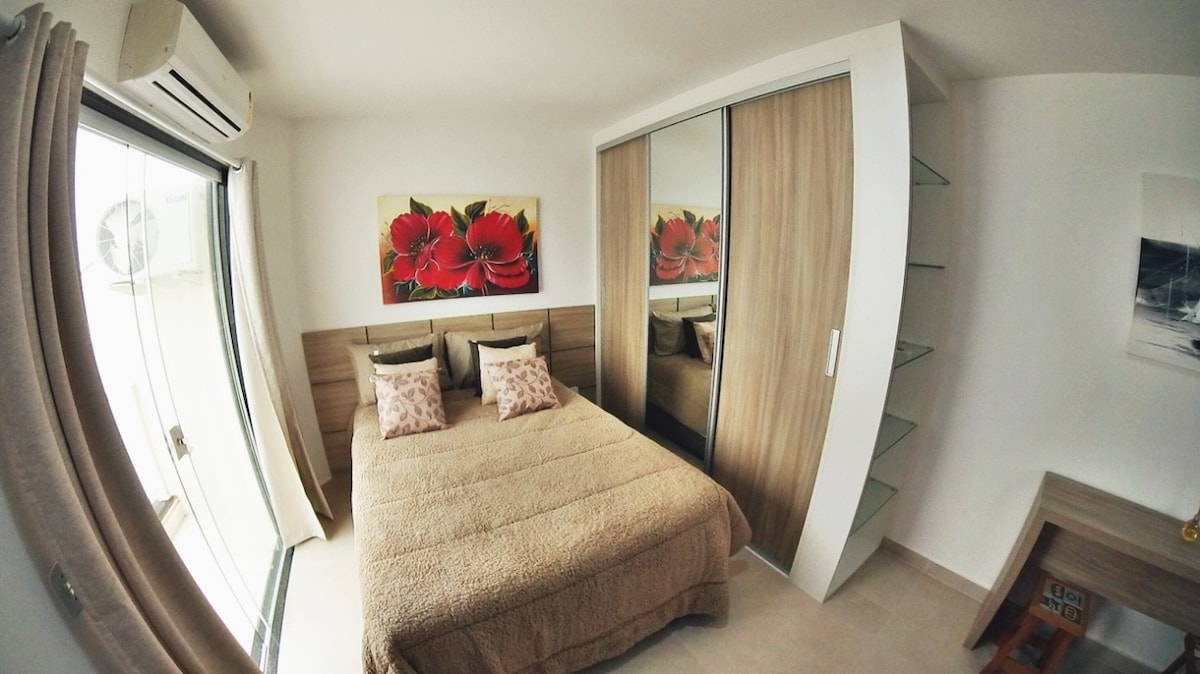 Wohnung mit eigener Küche und Bad (nur du nutzt sie) mit Internet, 32-Zoll-Fernseher, inklusive Bettwäsche, zwei Blocks vom Strand entfernt, mit Deckenventilator und 40 cm Tischventilator., Kühler, der verwendet werden kann, um deine Getränke zum Strand zu tragen, verfügt über einen kleinen Balkon und eine Hängematte, die mit elektrischem Bügeleisen, Kaffeemaschine, Mikrowelle und Haartrockner ausgestattet ist, um die Wohnung zu betreten, die notwendig ist, um ein Einkaufszentrum von etwa 20 Metern zu erklimmen.