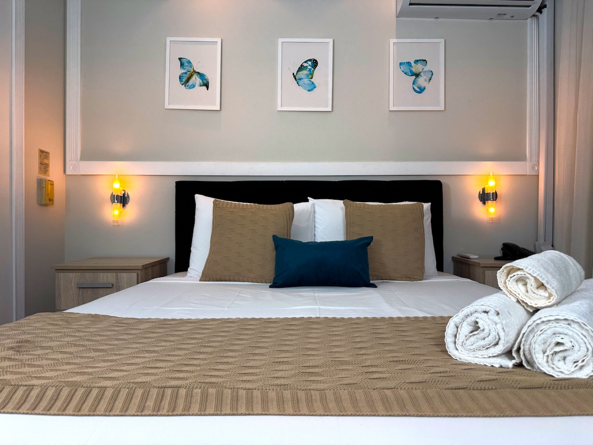 Entdecke unsere 40 m² große Suite im Herzen von São Paulo! Mit einem gemütlichen Whirlpool zum Entspannen bietet er Komfort und Stil nur 400 m von der U-Bahn-Station República entfernt. Perfekt für diejenigen, die Praktikabilität und einen Hauch von Luxus in der Stadt suchen. Schaffe unvergessliche Erinnerungen! Frühstück beinhaltet: Kaffee, Milch, Pratz Orangensaft, 2 Käsebrot, 2 Minimilchbrot, 2 Mini-Ciabatta-Rollen, 2 süße Kokosrosetten, Mozzarella, Truthahnbrust, Butter, Frischkäse und Marmelade.