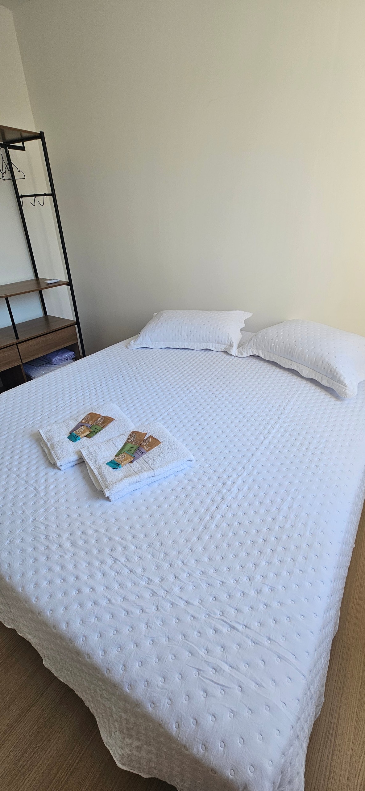 Ich biete einen gemütlichen Aufenthalt mit Klimaanlage und Blick auf die Stadt. In der Residenz finden Sie saubere Bettwäsche und Handtücher. Eine Küche mit Utensilien, Cocktop, Mikrowelle, Kühlschrank, im Wohnzimmer ein ausziehbares Sofa und 54-Zoll-Fernseher mit NetFlix, 3 Schlafzimmer, davon 2 Schlafzimmer mit Doppelbett und 1 Schlafzimmer mit Einzelbett, 1 BWC, Bügeleisen und Bügelbrett, Haartrockner und WLAN. Nur die Waschküche (die sich außerhalb der Immobilie befindet) wird mit den anderen 2 Häusern der Wohnanlage geteilt.