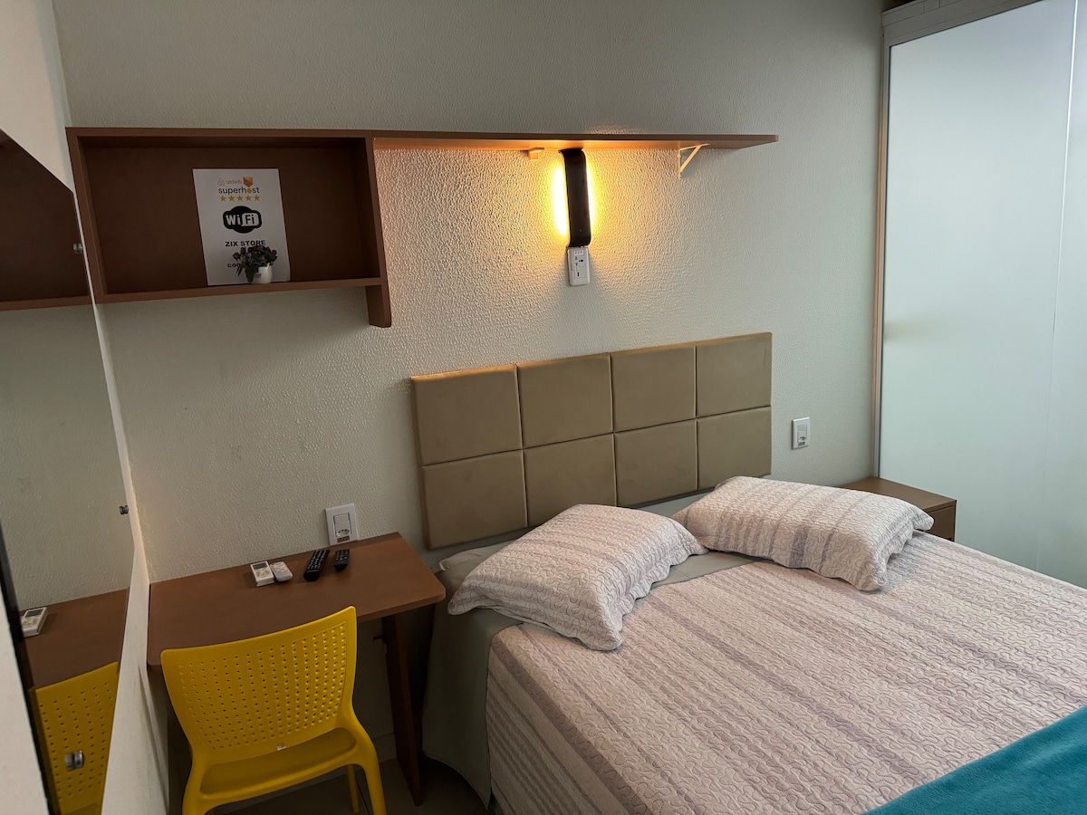 Linda Suíte (R10) Com ar-condicionado, Televisão, escrivaninha, closete um amplo banheiro, A diária está por apenas R$ 210 para uma pessoa R$ 240duas pessoas R$ 280 três pessoas - Lembrando não incluso café da manhã!!!