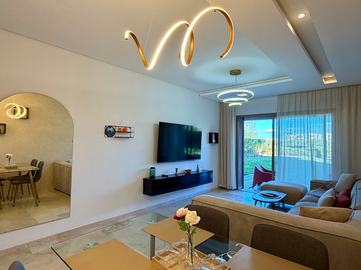 Profitez de votre séjour dans un appartement moderne et bien meublé à côté de toutes les commodités d'une nouvelle résidence. Il dispose de 2 chambres équipée d'un home cinéma 4K, d'un salon, d'une salle de bain, d'une cuisine américaine et d'une petite terrasse. • Climatiseur performant • Accès rapide à Carré Eden, Majorelle, restos • Home cinéma immersif Marrakech vous accueillera toujours. 😊 Internet ne fonctionne pas pour le moment