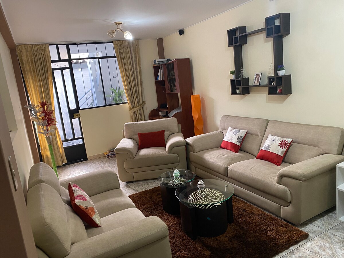 Voll möblierte Wohnung, super ausgestattete Küche, warme Betten, warmes Wasser, schnelles WLAN, Waschmaschine, Zimmer mit einem Fenster mit Panoramablick auf die Stadt. Unabhängiger Eingang, können Sie gut ausruhen, weil es keinen Lärm von außen, in der Nähe des Zentrums von Huancayo. Wir geben dir Handtücher und Dinge, die du für einen angenehmen Aufenthalt benötigst